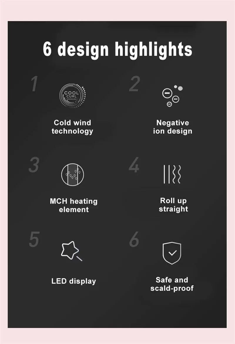 Intelligent Control: Digital display with adjustable temperature from 140°C to 220°C , ideal for adapting to the sensitivity of your hair.