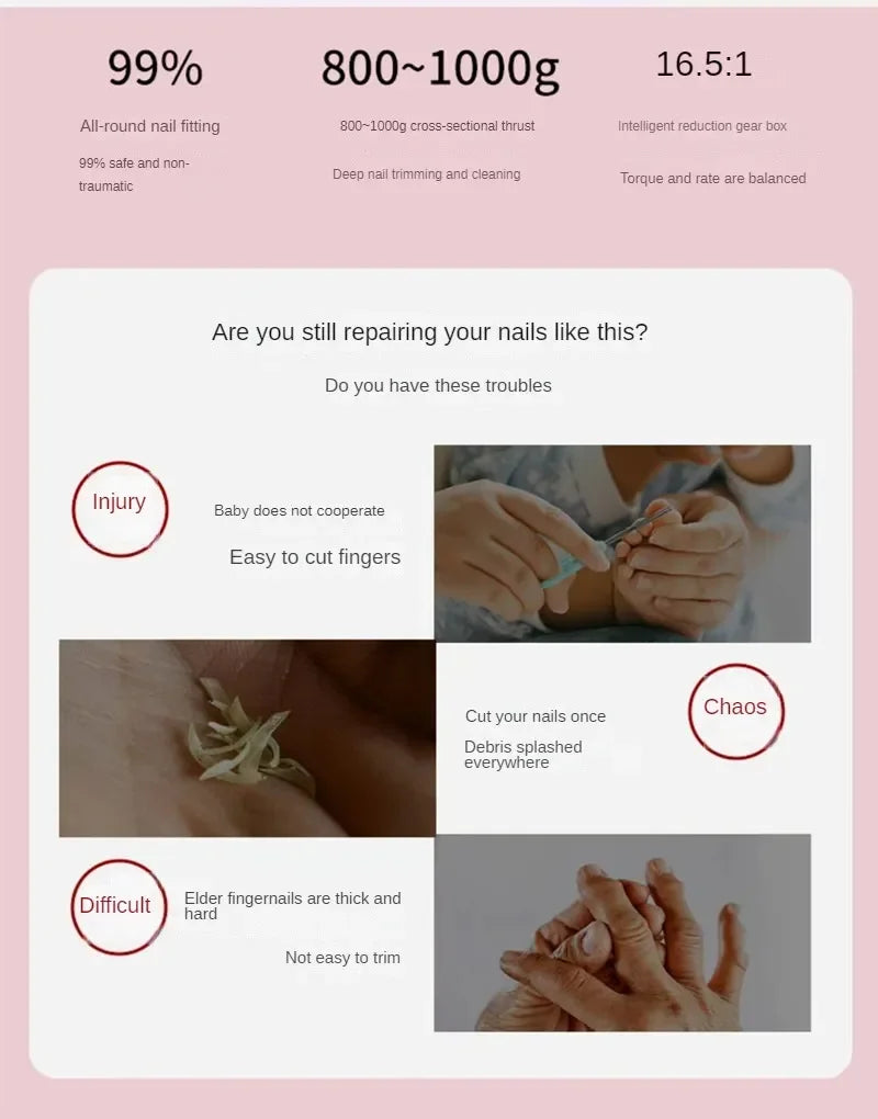 2-in-1 Electric Nail File and Nail Grinder, Automatic Nail Clipper for Adults and Kids with Safe Anti-Pinch Design